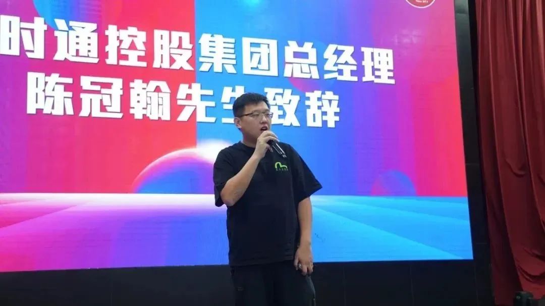 “论剑2023”精英峰会在热烈的现场气氛中隆重开场。运时通控股集团总经理陈冠翰先生上台致辞,为学员们注入士气。